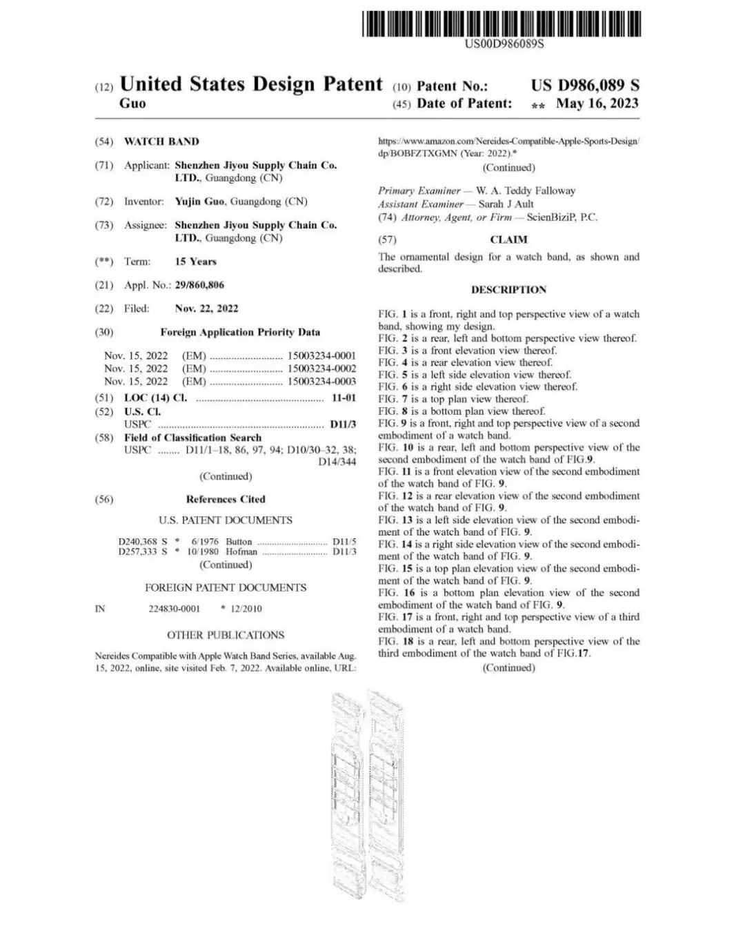 本案涉及外观专利维权,专利编号:US D986089 S: