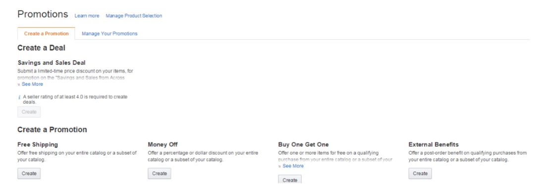 亚马逊的五种促销活动:Free Shipping免运费(仅限自配送商品)、Percentage Off(money off)满减及折扣、Buy One Get One买一送一、External Benefits买满再买优惠、Giveaway亚马逊抽奖。