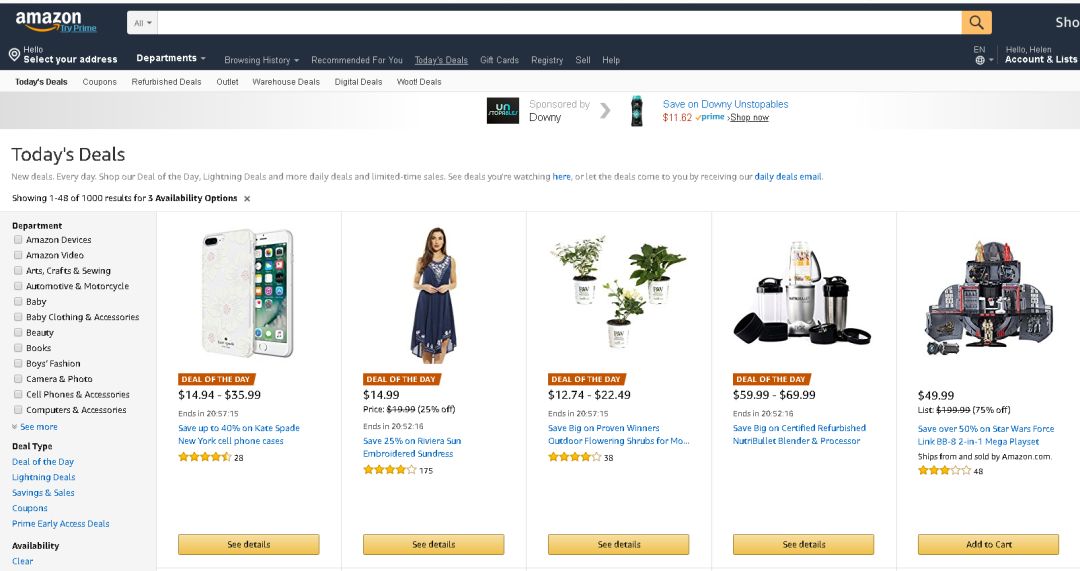 搞促销是很多亚马逊的卖家都会用到的一个招数,促销和折扣能让你排在品类的第一名,同时也提高了出现在亚马逊首页“Hot Deals ”和“New & Noteworthy”版块下的概率,这些版块能给你带来大量的流量,同时提高你页面相关产品的曝光度,吸引消费者购买你的其他产品。