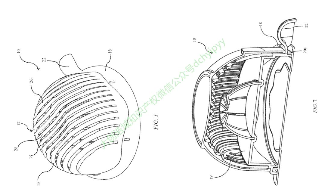 谷歌翻译:一种切割装置,包括:切割体,具有形成圆顶形状的表面和外边缘,其中外边缘的圆周形成第一正弦波图案,其中第一波形图案被配置为具有在其内垂直延伸的幅度。外缘放置在水平表面上时的外缘;多个平行槽穿过第一切削体的圆顶表面;所述基座具有形成第二正弦波图案的第一表面,其中所述第二波形图案被配置为当所述基座设置在水平表面上时具有在所述基座内垂直延伸的幅度并且被配置为接触并配合在所述第一波形内当第一切割体以圆顶构造设置在基座上时,第一切割体的外缘的圆周的图案,其中基座还包括第二表面,该第二表面构造成用于放置在其上的食品的水平切割表面。当底座放置在水平表面上时,在第一切割体下方,其中多个槽中的每一个适于接收和引导切割装置通过其切割放置在第二表面上的食品。)仍然侵权!
