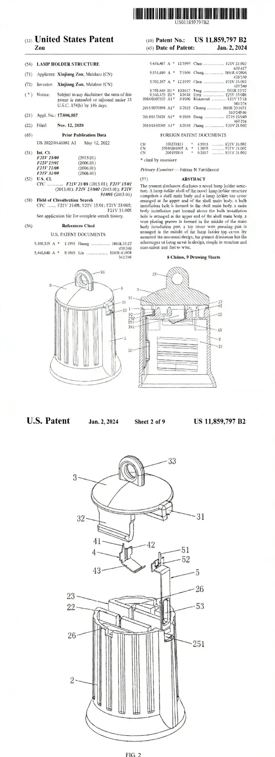 原告Xinjiang Zou是来自深圳的中国公民,专注于灯具领域的技术研发,拥有“新型灯座结构”等多项美国及中国专利。