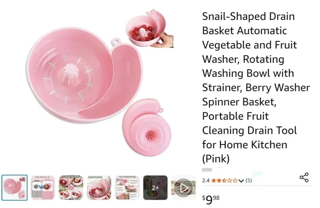 原告Dongshang Lin为我国卖家,他就其专利产品“蜗牛沥水器”开展维权。该产品为多功能厨房用具,可作为洗碗盆使用,同时具备沥水及存放切配蔬菜的功能,侵权风险极高。