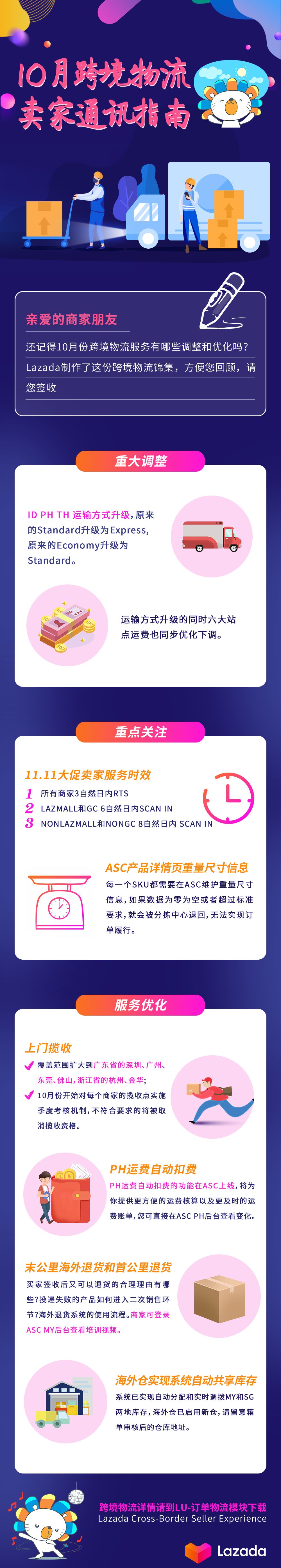 叮~您有一封《Lazada10月跨境物流卖家通讯指南》请签收!
