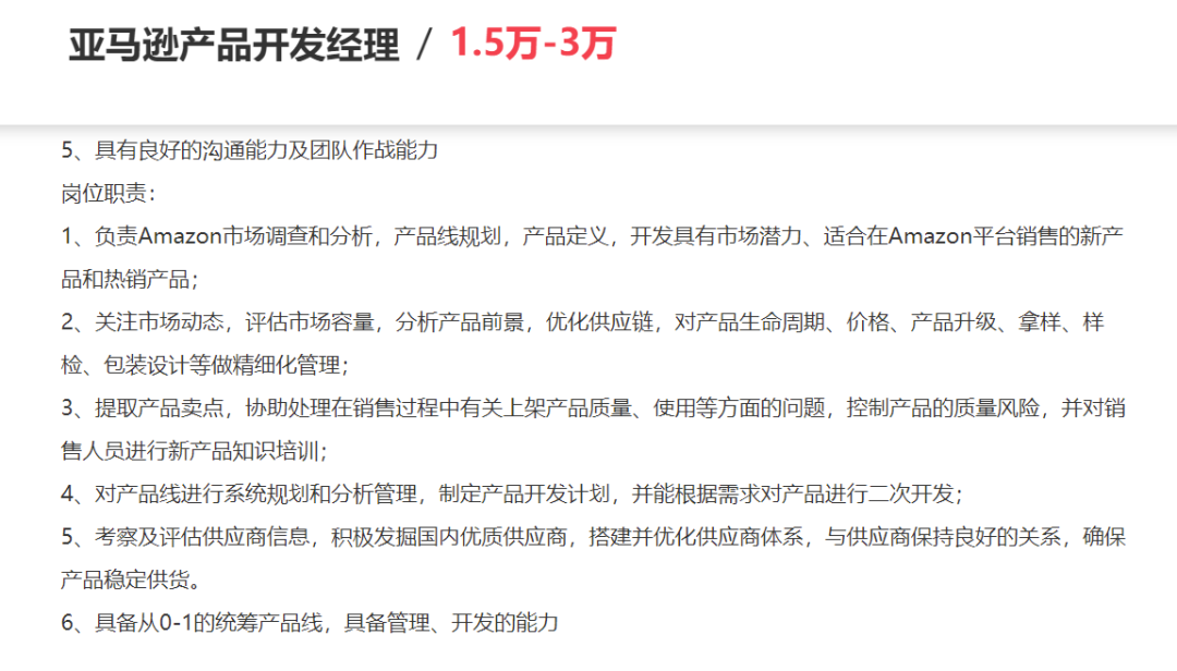 之前了解过深圳还有杭州那边很多亚马逊公司,包括规模小的公司都会专门配产品开发岗,并且有的产品开发也参与产品的利润分成。
