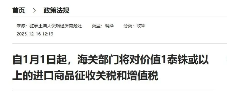 泰国方面表示,此举并非临时调整,而是围绕本土产业保护、税收体系完善以及进口监管升级展开的系统性改革。