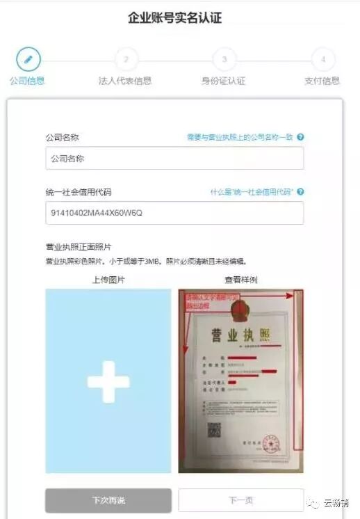 想要注册公司账号的,选择企业认证。填写信息没什么好说的,重点还是拍照。
