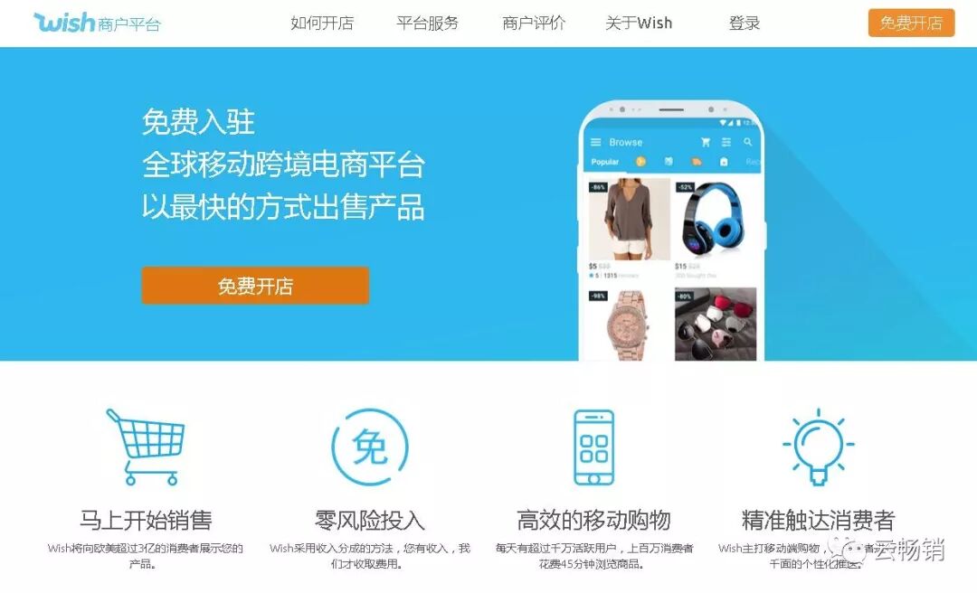 第一步:登录 china-merchant.wish.com并点击“免费使用”