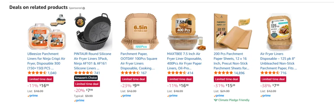 这类流量广泛分布于亚马逊页面的各类推荐专栏,其中大部分带有 “Sponsored” 广告标识,少数为自然推荐,是流量拓展的核心增量渠道: