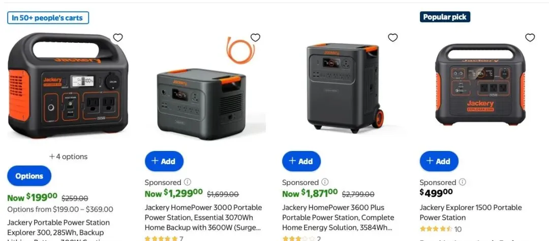 # 线下,已与沃尔玛、Costco、Home Depot等全球知名零售商建立深度合作,其中Jackery品牌在沃尔玛还常被贴上“Popular pick”等热门标签。