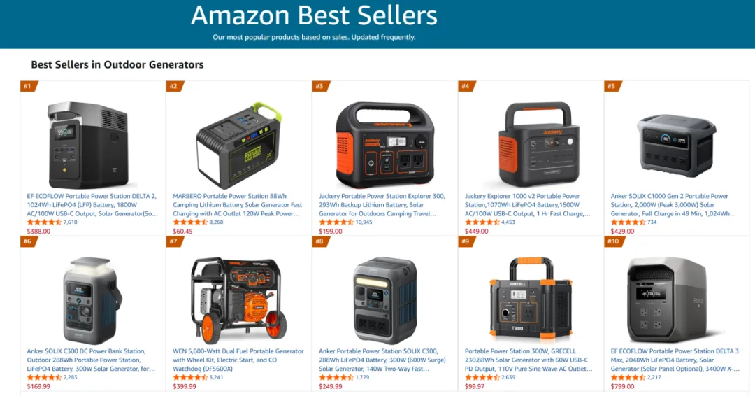 亚马逊BSR榜单上看,为抢占海外旺季市场,华宝新能加大促销力度,多款核心产品折扣率超20%,部分达44%虽然维持了销量,但是利润也被大幅压缩。