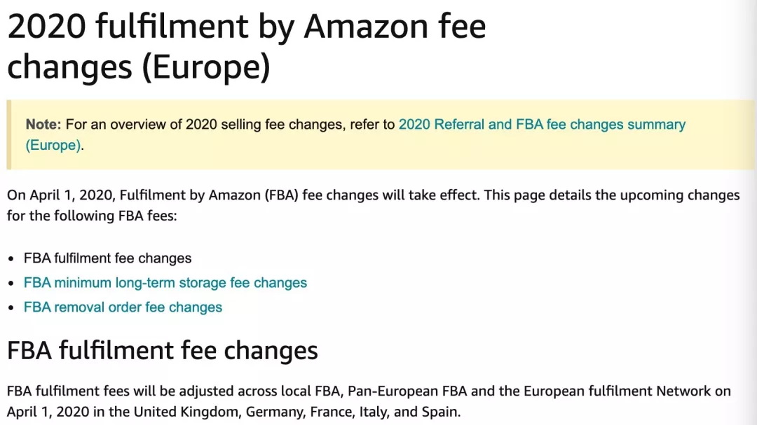 果不其然,1月30日,亚马逊官方贴出了公告,正式官宣!亚马逊欧洲站将从4月1日起对物流费用和销售佣金进行调整,调整的内容和美国站大同小异,包括:配送费用、长期仓储费、移除订单费用。此番调整,将会适用于欧洲站所有站点。