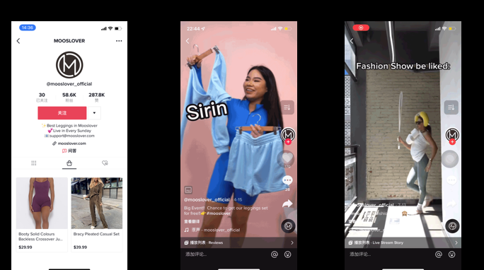 这里我觉得可以讲一个可能大家比较陌生的例子Mooslover。它之前是一个专注于瑜伽裤的品牌,但是它的商品力特别强。我们给它定制了什么样的方案呢?它通过我们的联盟,跟我们达人进行了非常积极的合作,达人自发的拿到了它的产品跟它互动,告诉它你这个价格怎么样,价格应该怎么样做适配。达人在TikTok上自发为它做一些短视频。
