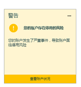 北京时间上午时分,有卖家爆料,自己收到了亚马逊的黄色警告:您的账户发生了严重事件,导致账户面临临时停用风险!