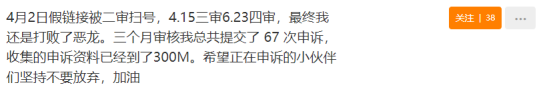 说真的,很少有人能做到提交10次申诉不放弃的,更何况67次的!但是也印证了一句话:皇天不负有心人。对正在努力申诉的卖家们也是个莫大的鼓舞!