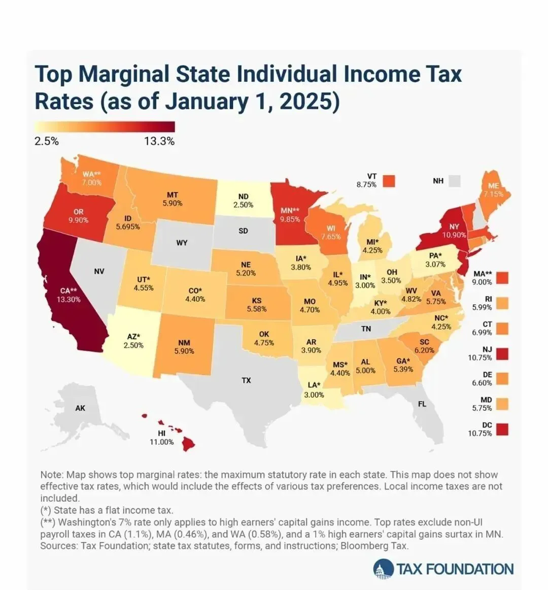不过,这次的减税措施并非来自联邦政府,而是由少数几个州所推出;根据非营利智库「税务基金会」(Tax Foundation),共有八个州已于1月1日起降低了所得税税率。