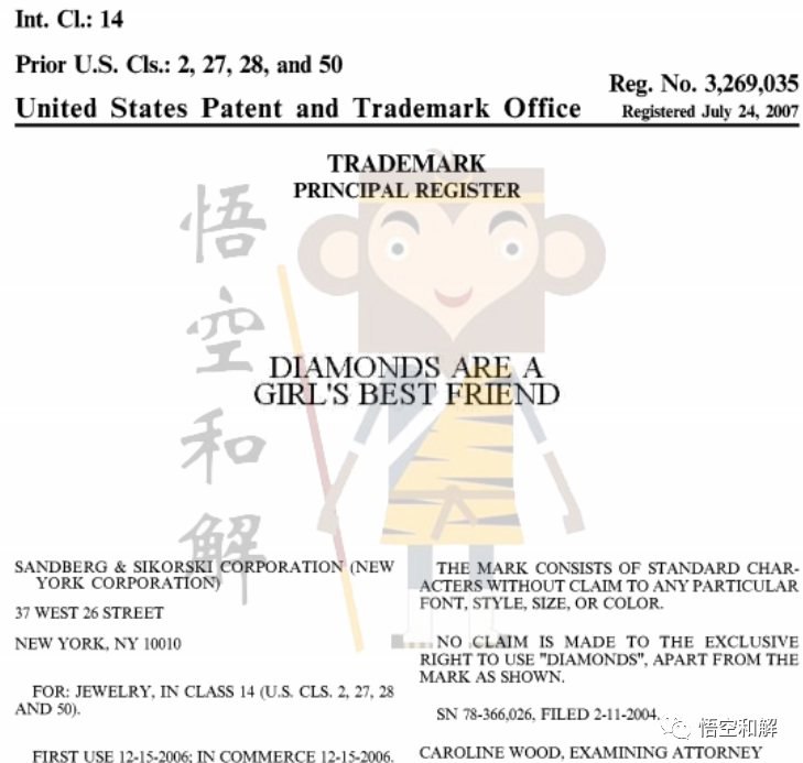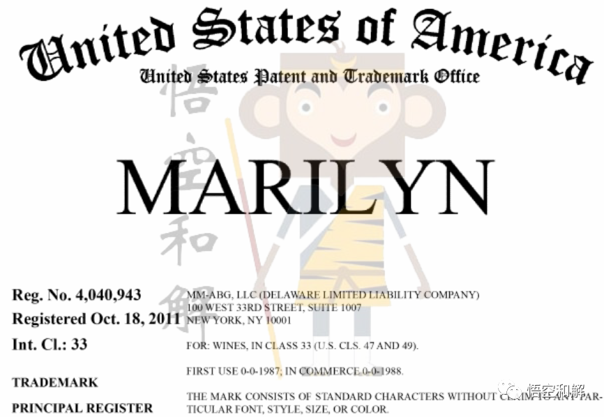 玛丽莲梦露并不是原告律所THE SLADKUS LAW GROUP代理的新品牌了,早前已经维权过好几次,主要是文字商标容易造成侵权。