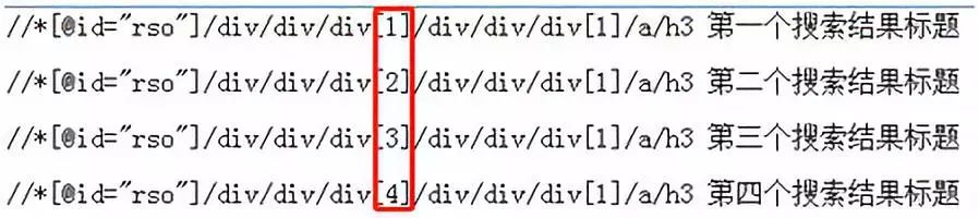 多拷贝几个搜索结果的XPath,可以找出其中的规律: