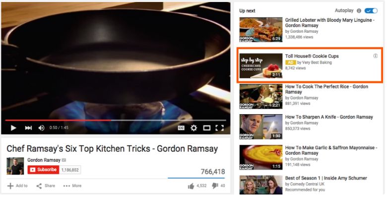 触及广告是YouTube上最常见的广告了,它内容多样,长度在12秒至6分钟之间时,用户可以在五秒后跳过,而只有在用户观看完毕、点击链接或至少看完30秒后,推广方才需要为广告付费。