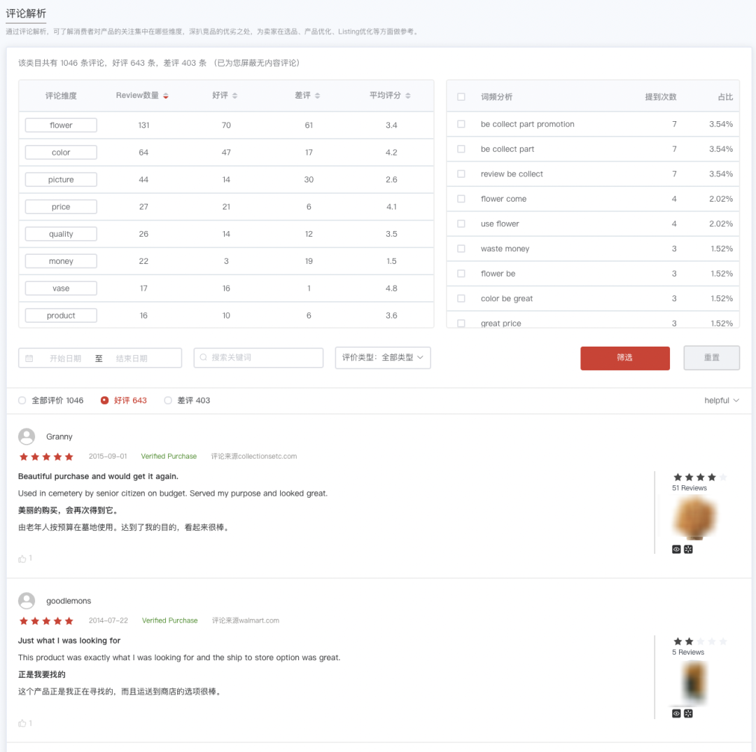根据买家评论不难发现,干花不仅可以装饰房屋,还能用来泡澡,做节日装饰等...如果是已经在售卖且销售不好的卖家,就可以轻松根据买家评论结合圣诞热点进行listing优化,并在套图上优化应用场景。