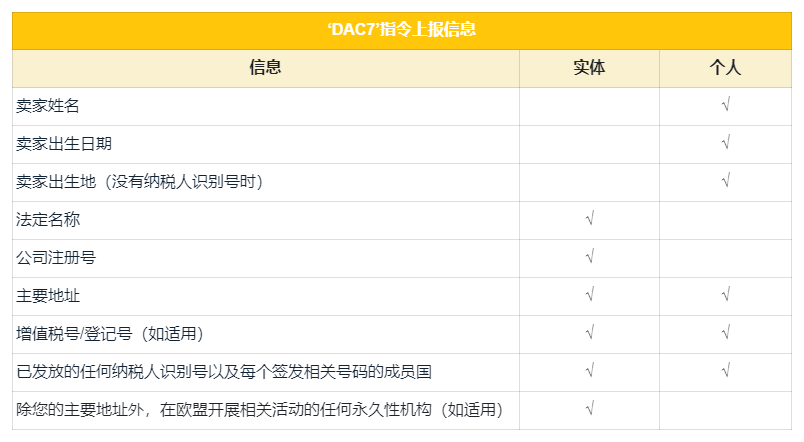 行政合作指令-第七修正案(DAC7)要求欧盟国籍卖家须在2023年10月1日之前提供「行政合规性信息」。