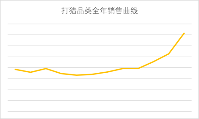 打猎品类有一定季节性(参考下图,数据参考亚马逊美国站销售),相对来说,秋冬是户外打猎的旺季。卖家也可以参考不同季节的打猎活动,制定相应的促销。