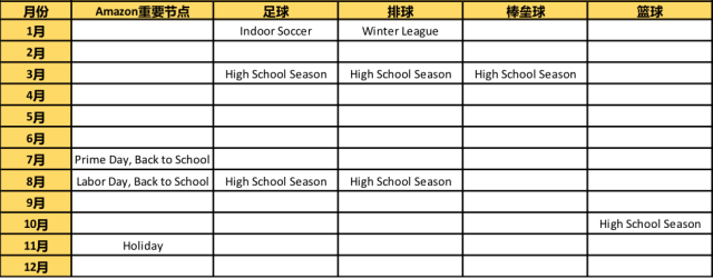 除了Holiday Season的提升外,团队运动的季节性也不太明显(参考下图,数据参考亚马逊美国站销售)。卖家可以根据自己销售的具体项目,跟进美国相关的赛事和校园销售季节来制定促销。