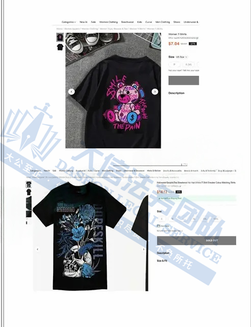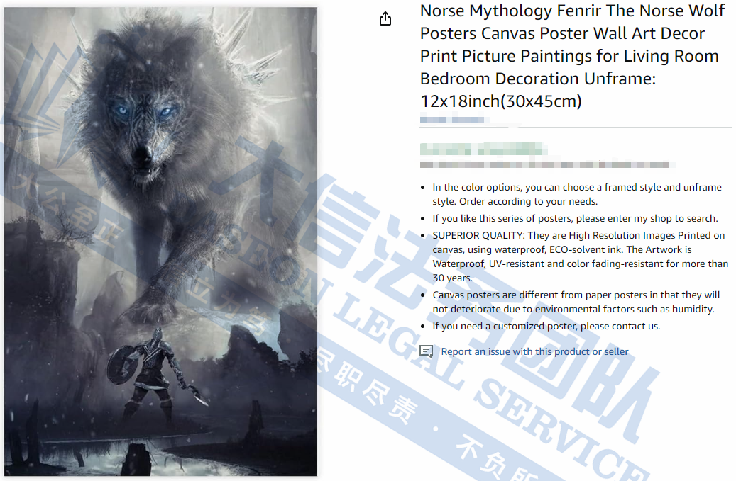 此案为版权维权,涉及12张“北欧神话”主题版权作品,以下是涉及版权的具体信息,未经授权不得擅自使用,侵权风险极高,跨境卖家尤其是服装卖家尽快检索下架,避免TRO侵权风险!
