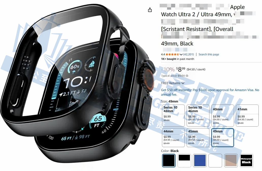 原告是国人卖家,专注于将时尚美学与耐用材质相结合的3C 配件的设计与销售,旗下有一款明星产品,Apple Watch 保护壳的外观专利,是一款采用高硬度钢化玻璃膜,搭配超薄边框且具有防摔防指纹、不褪色的材质,精准开孔保留原屏触控灵敏度与色彩饱和度。Apple Watch保护壳安装简便,轻量无感贴合表身,适用于运动以及日常通勤等多种场景。
