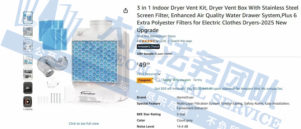 原告是一家专注于室内空气质量解决方案的企业,其品牌 BetterVent 专注于研发高效、节能的干衣机通风系统,致力于为电热式干衣机用户提供安全、便捷的室内通风解决方案。ADR Products 的专利设计不使用水,易于清洁和维护,并通过其双过滤系统过滤电动烘干机的废气,不含棉绒灰尘。它保护室内空气质量并节省能源。