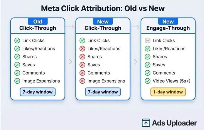 (该图片截取自Chris Pollard撰写的Meta Click Attribution in 2026: Only Link Clicks Count Now)