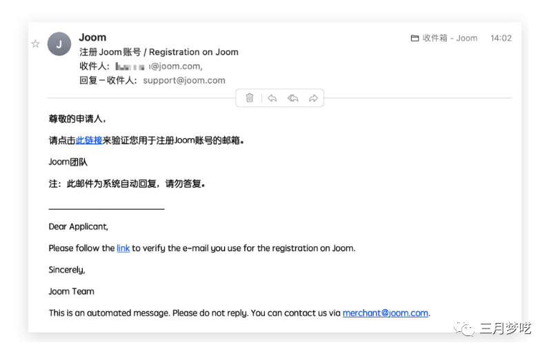 3. 进入邮箱,点击邮件中的链接进入到资料填写界面