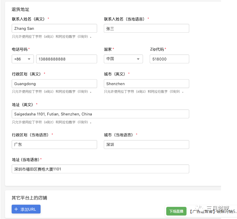 2. 添加完微信,获得专属入驻链接,填写经理安排的入驻链接,接收入驻链接,选择国家,点击下一步
