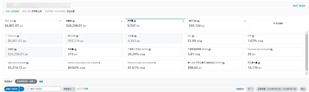 第一,不少广告活动的实际转化率明显高于平均值,好的能做到4%左右。这说明问题不是产品完全转不动,而是广告结构、流量分配和页面承接之间还没有匹配好。