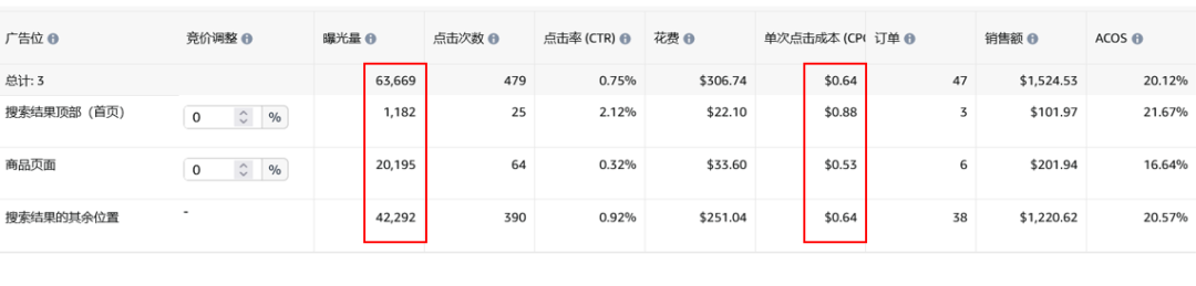 & 如果发现在使用关键词投放后,卖家要花费在商品页面和搜索结果其余位置上,那么则说明当前的竞价低了,无法竞争到搜索结果顶部的位置;