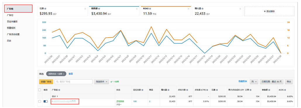 & 第1步:首先在广告活动中点击广告组(建议一个广告活动下设置一个广告组)