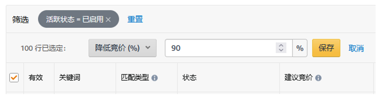 & 第5步:在降低降价的百分比中,填写90,这样原竞价1.00美金,调整后的竞价就变为了0.1美金,缩小了10倍。