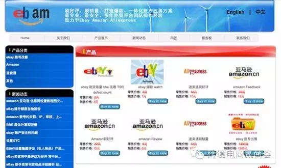 某专注于为eBay、美国亚马逊和Aliexpress等电商平台“刷单”的中国网站。