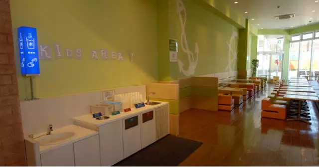 ↑儿童区内所有设备尺寸都小一号。桌椅,洗手池都是儿童尺寸。