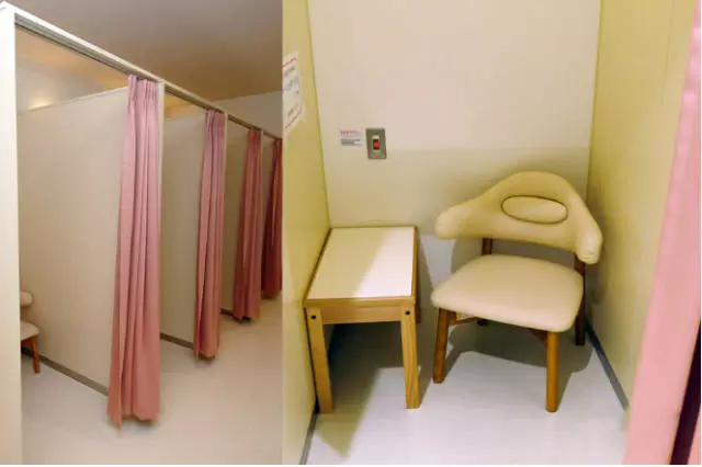 ↑婴儿室允许男性进入给孩子冲奶粉,换尿不湿。而哺乳区内是一个个独立的哺乳室,男性止步。墙上有应急按键。