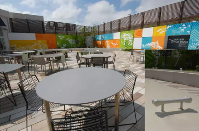 ↑木更津三井奥特莱斯购物城是一座海滨小镇,很多日本人会带狗前来,这是专门开辟的狗与主人的共同休息区——栓狗桩也很有创意
