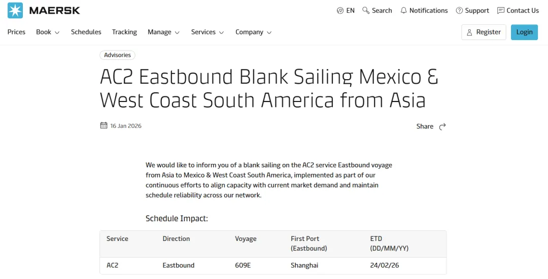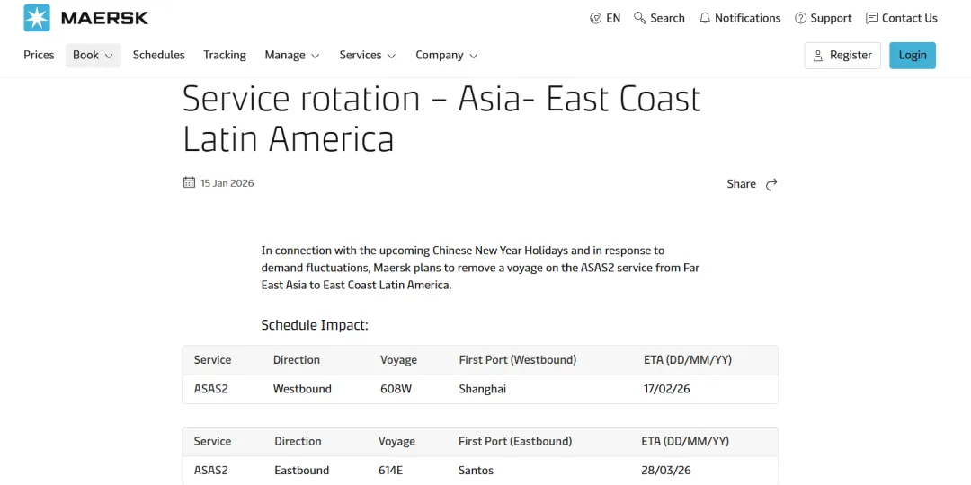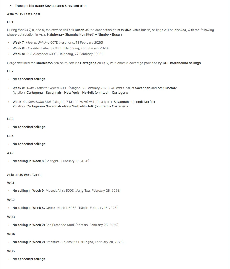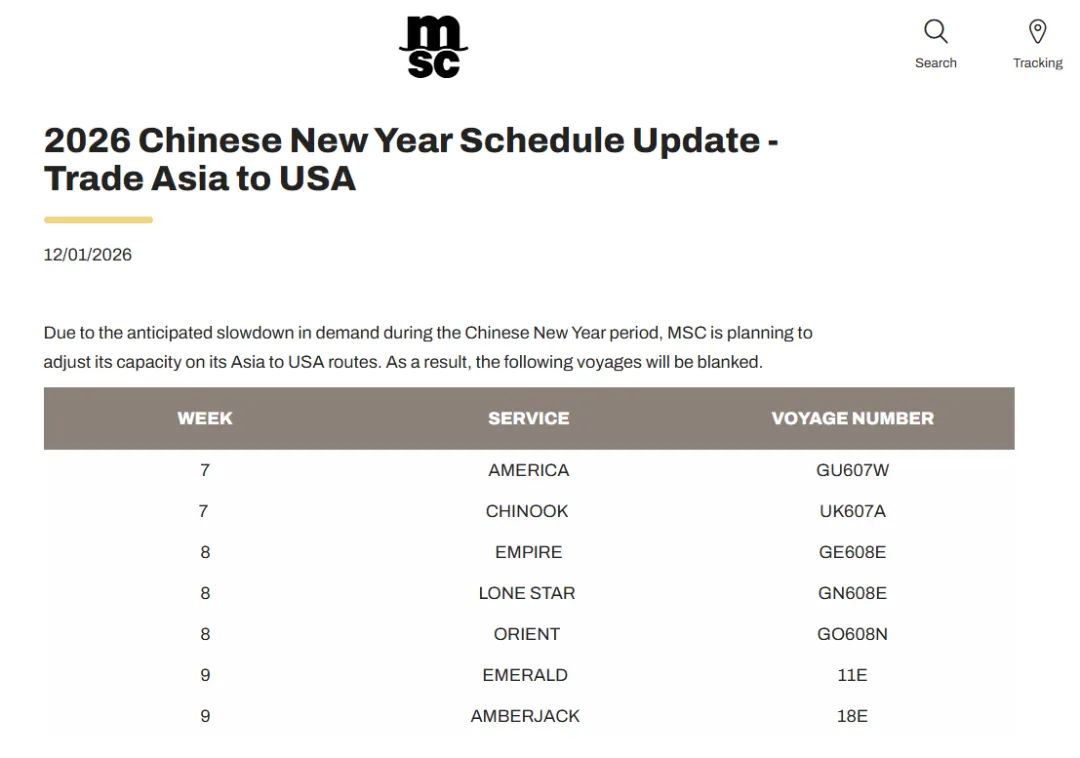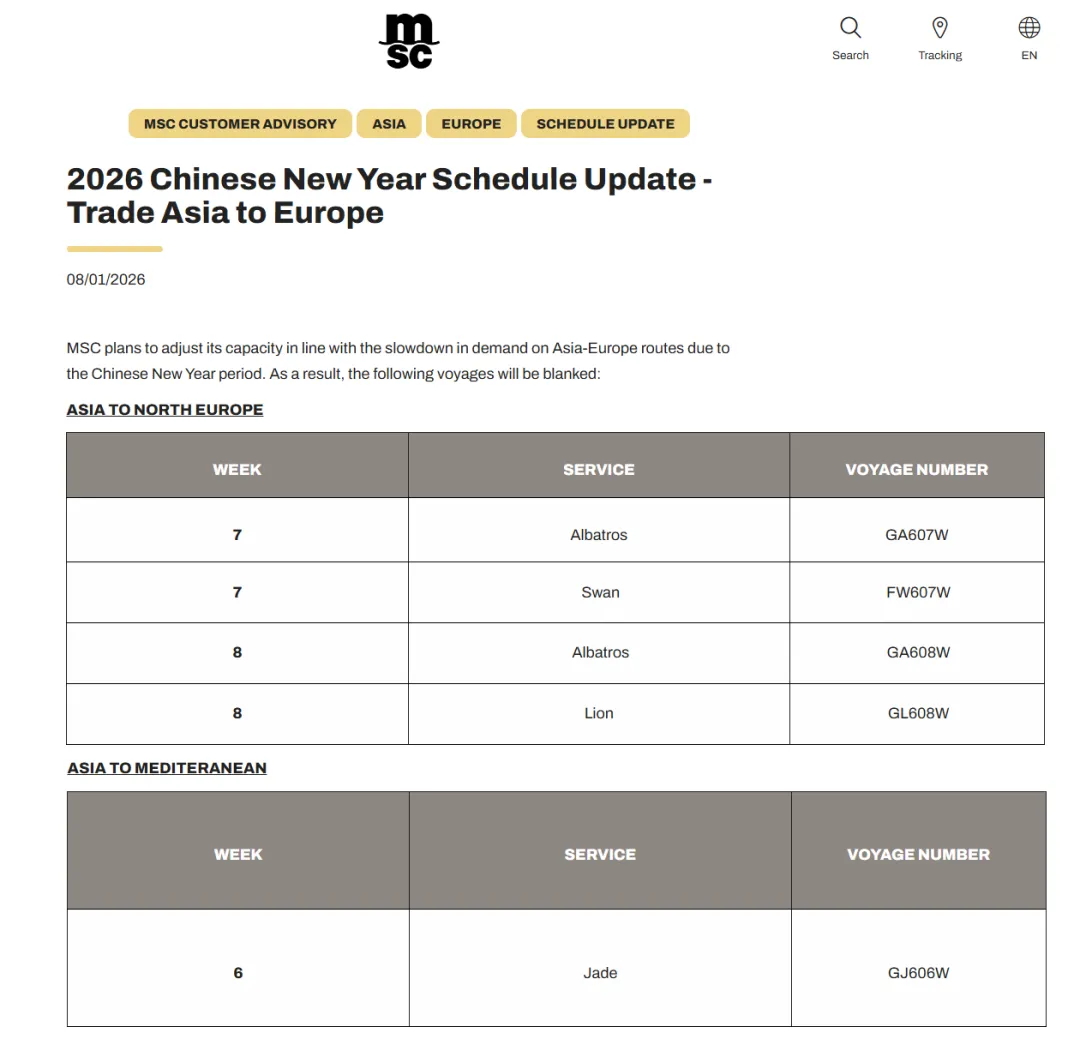 MSC称,由于春节期间亚欧航线需求放缓,计划调整运力。