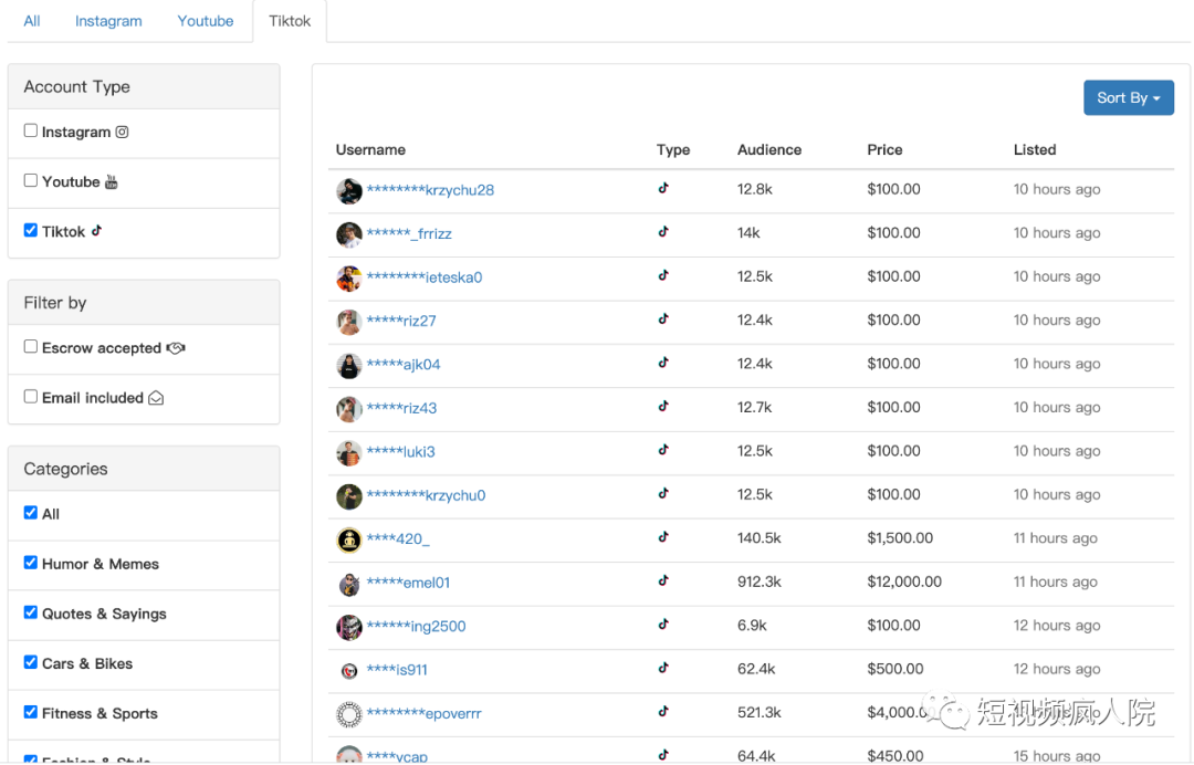 TikTok账号交易现状