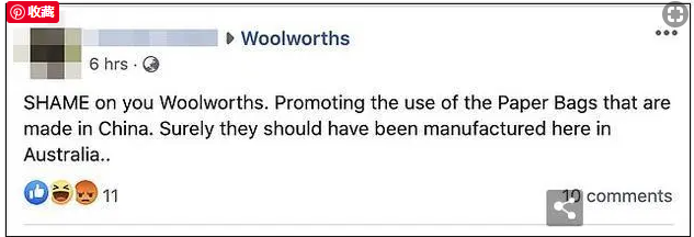 这件事甚至上了当地新闻:“Woolworths超市因使用中国制造的新购物袋而遭到抨击,纸袋推出的第二天即被贴上‘耻辱’标签”。