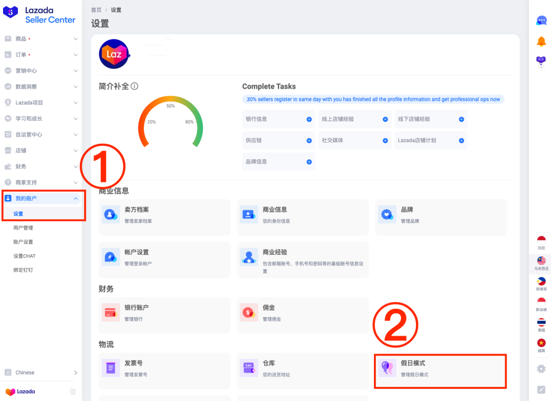 如商家无法在春节期间及时发货,可春节放假前在商家后台【ASC-我的账户-设置-物流-假日模式】开启店铺假期模式。