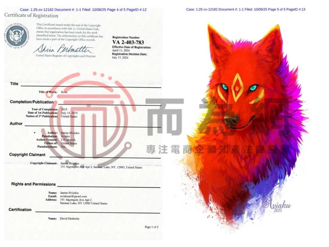 【侵权快讯】25-cv-12182 Keith代理全新两张狼元素版权发案维权!速排查下架!