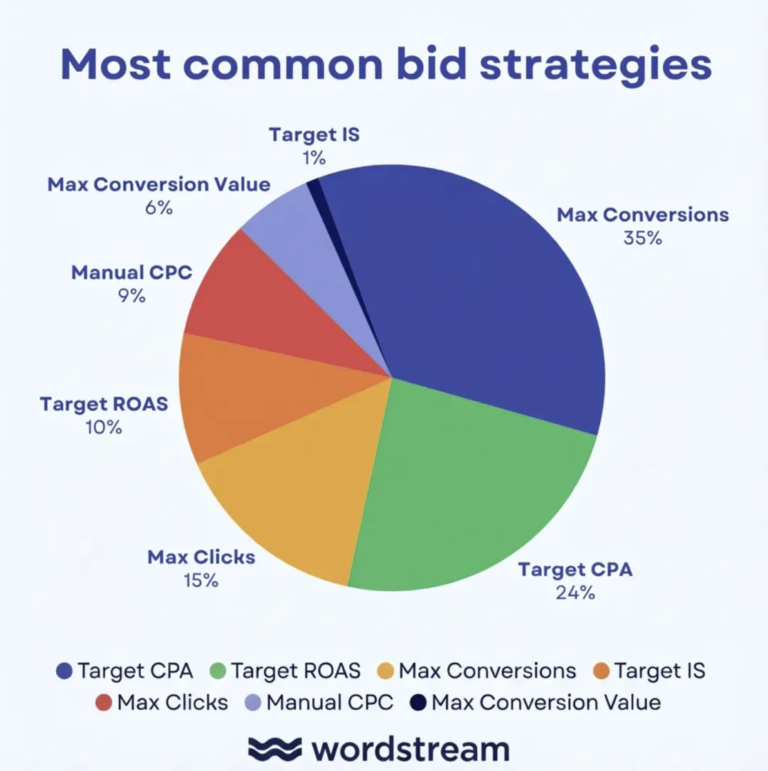 广告主到底在用什么出价策略?什么时候用?wordstream分析了 16,825 个 Google Ads 搜索广告系列,发现了一些有意思的规律,以及不同账户类型之间的明显差异。
