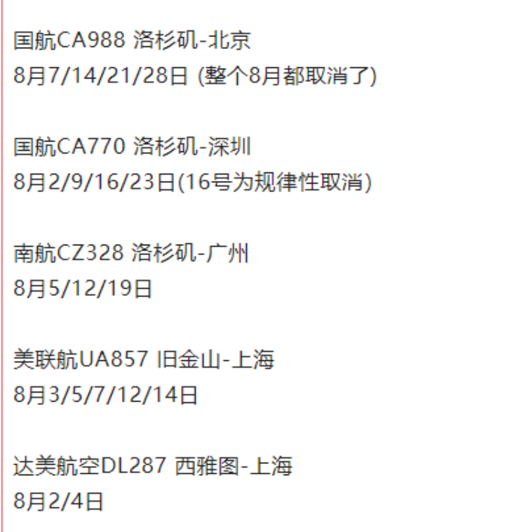 国航飞北京的航班,整个8月都取消了。目前走美线空运的卖家可能受到的影响比较大,空运价格会上涨。