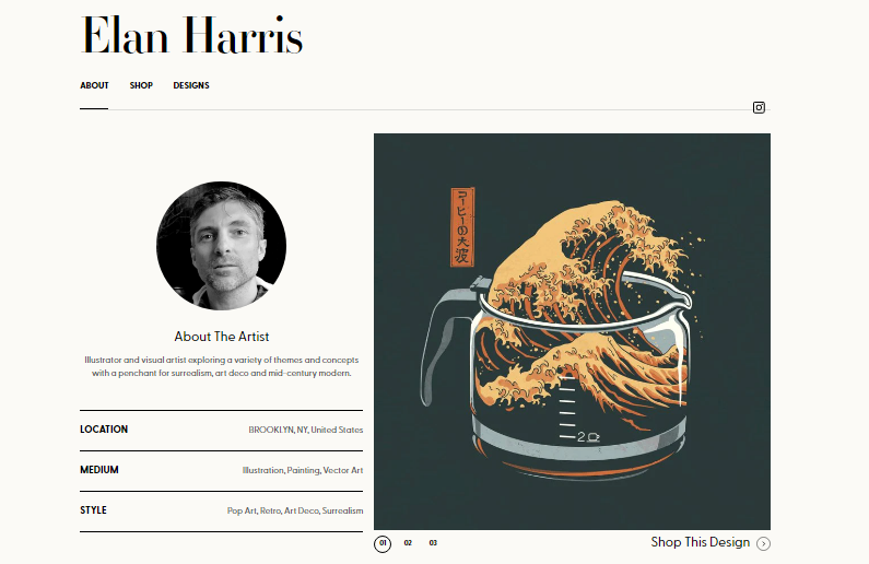 Elan Harris(艺名 Elanh)是一位来自美国布鲁克林的独立插画师与视觉艺术家。他的作品融合了复古、未来与梦境元素,常见几何线条、柔和配色与极具节奏感的构图风格,既有装饰艺术(Art Deco)的优雅,又带着现代平面设计的简洁。他擅长用抽象人物、花卉与空间意象传达情绪,让画面既温柔又有力量。