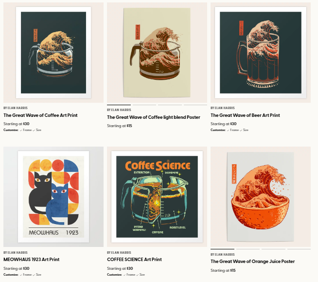 Elan Harris 的作品活跃在多个艺术平台,如 Society6、Redbubble 等,被广泛应用于装饰画、海报、抱枕、帆布包等产品。他的画风受到设计师与家居品牌的喜爱,常被视为“情绪疗愈系插画”的代表之一。无论是用于艺术收藏,还是家居陈设,都能带来一种宁静而富有现代感的氛围。
