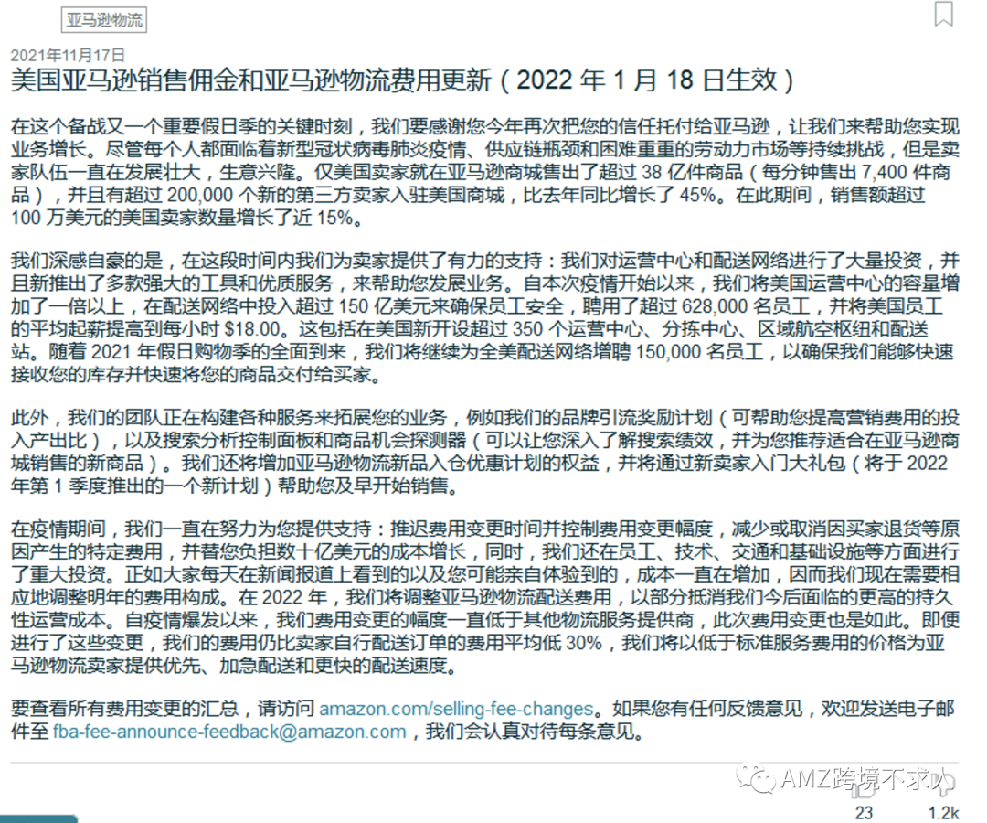 这次生效日期是1月18日,正在选品的小伙伴,都要以新的配送费来核算利润,避免货到没有利润。国内限电,成本和配送费的增加必然导致利润的大幅下降,大家可以早做打算做一个利润估算更新了,及时涨价保住利润,毕竟现在亚马逊赚钱是越来越不容易了。